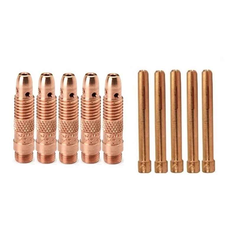 Utilizado para sostener el electrodo de tungsteno, que es el componente central de la antorcha de soldadura TIG. El electrodo de tungsteno es el encargado de generar el arco eléctrico que funde los metales a soldar, y se inserta en el porta tungsteno.